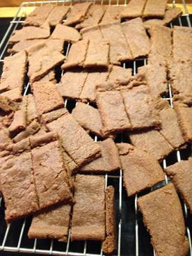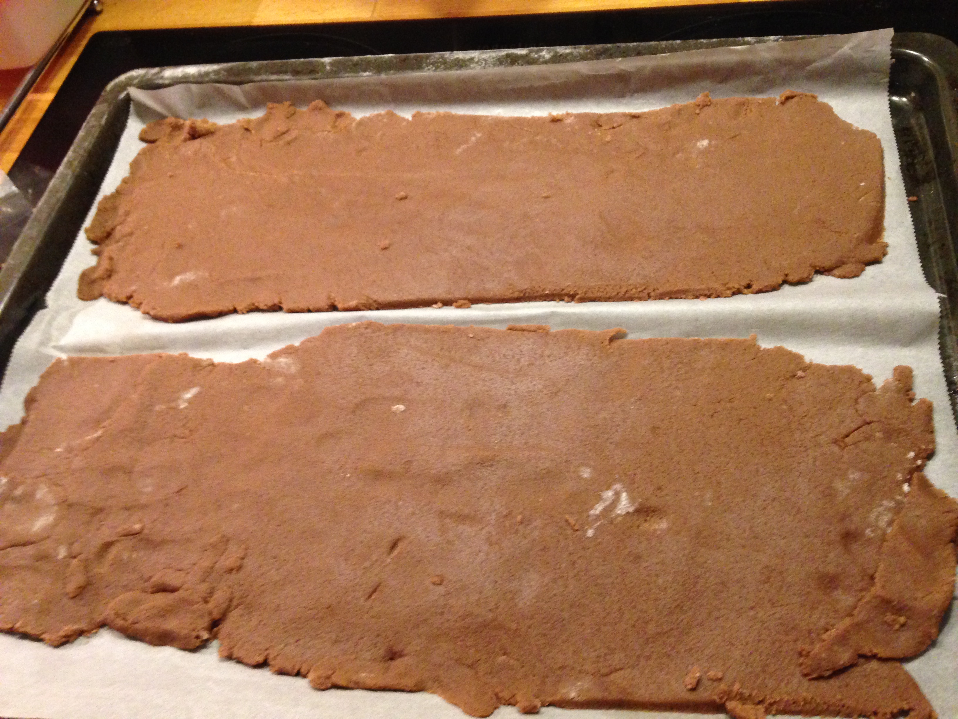 Rør smør, sukker og vanille sammen. Bland i en anden skål resten af tingene. Rør det hele sammen. Del dejen i 2 og rul med let meldrysset kagerulle, hver del ud til en lang flade (nemmest på bagepapiret, så du ikke skal flytte den). Bag midt i ovnen 12 - 16 min. Skær den varme kage i striber á ca 2 - 3 cm og flyt over på en bagerist til afkøling.