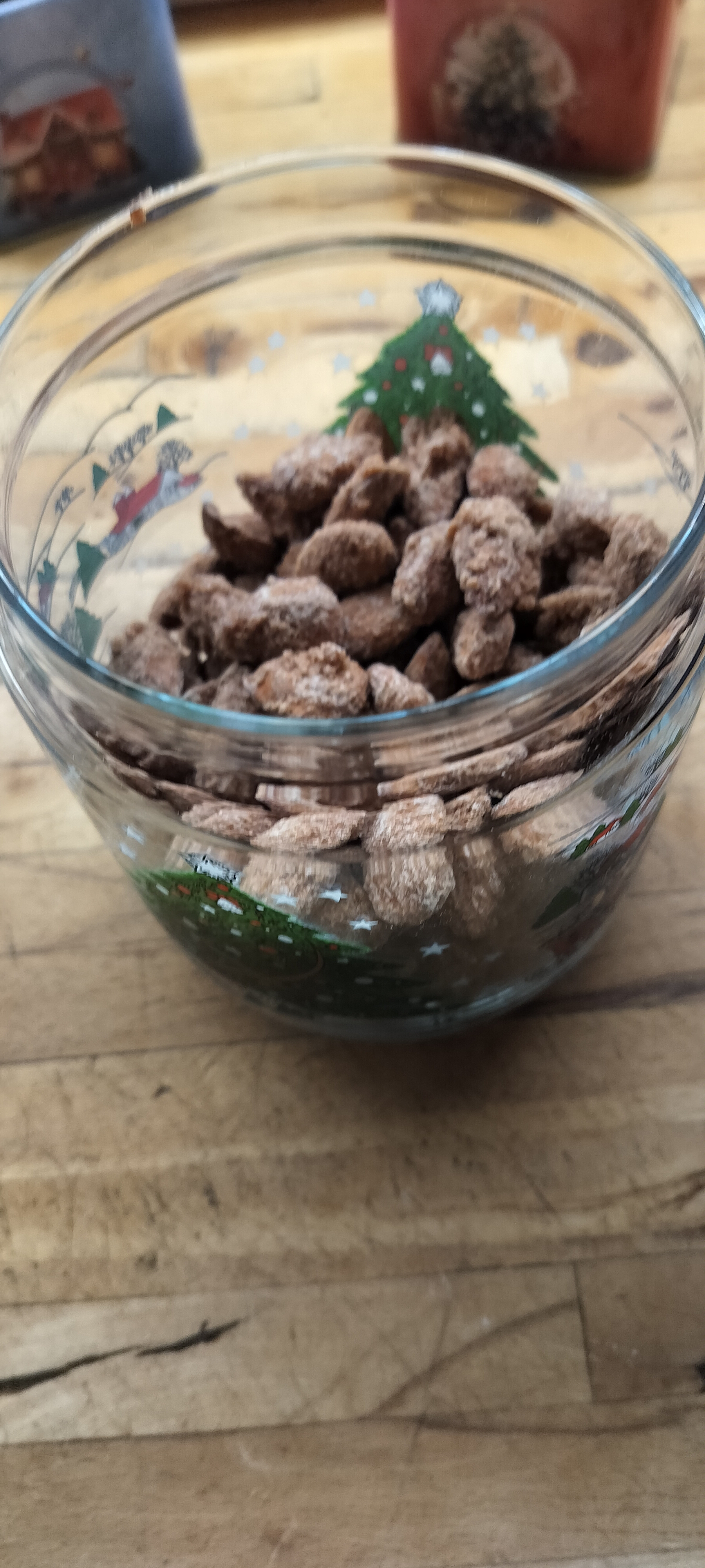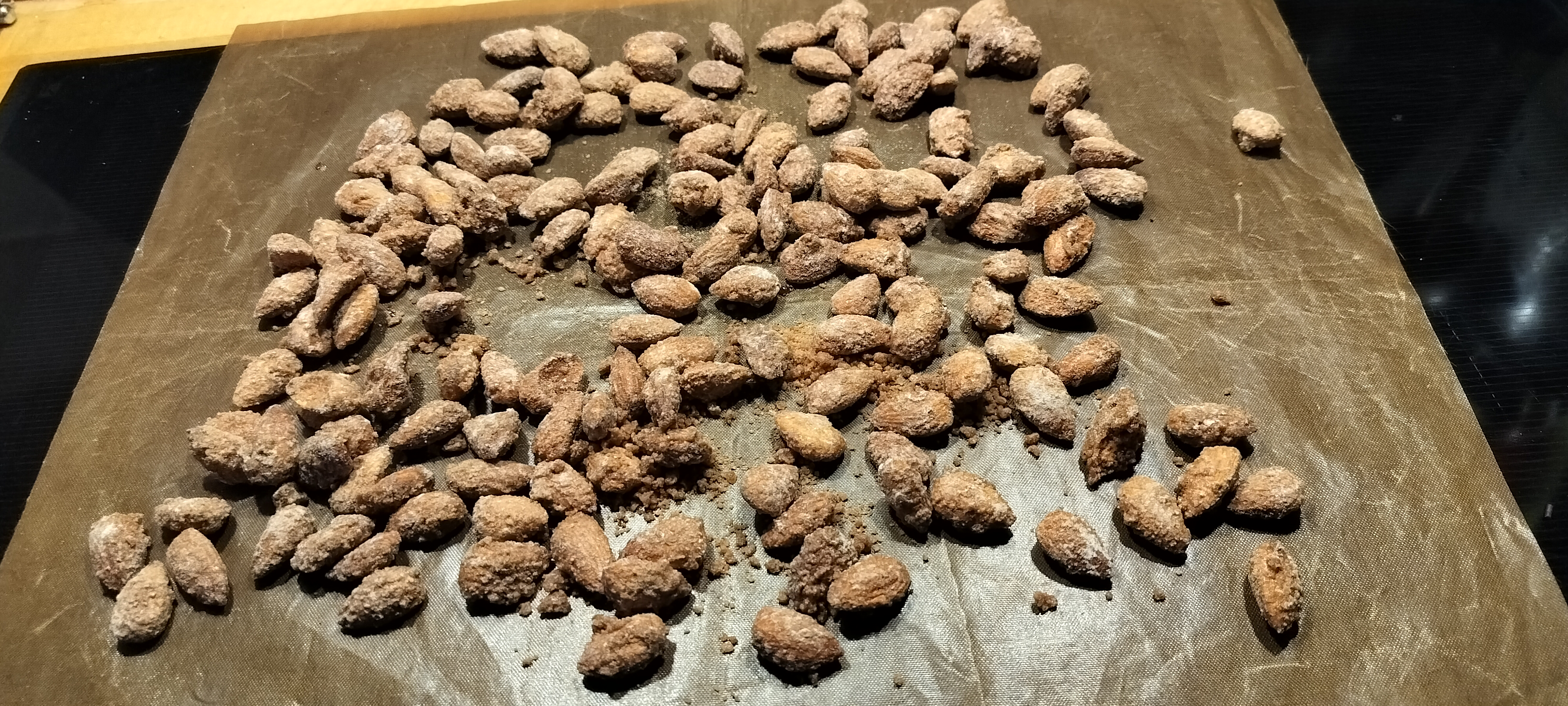 Kom mandlerne i en glasskål der kan tåle høj varme - plast kan smelte. Tilsæt vand, vaniljesukker, rørsukker og kaneil og rør godt. Put skålen i mikroovnen ved højeste effekt i 2 min. Tag skålen ud, rør rundt og giv mandlerne yderligere 1½ min, herefter 1 min et par gange, så sæt tiden ned til 30 sek og derefter 20 ad gangen. De er færdige når sukkeret er smeltet, så giv dem gerne lidt ekstra hvis det endnu ikke er sket. Hæld mandlerne ud på bagepapir, skil dem forsigtigt ad med et par gafler og lad dem køle af. De er bløde så længe de er varme, men bliver sprøde igen når de er kolde