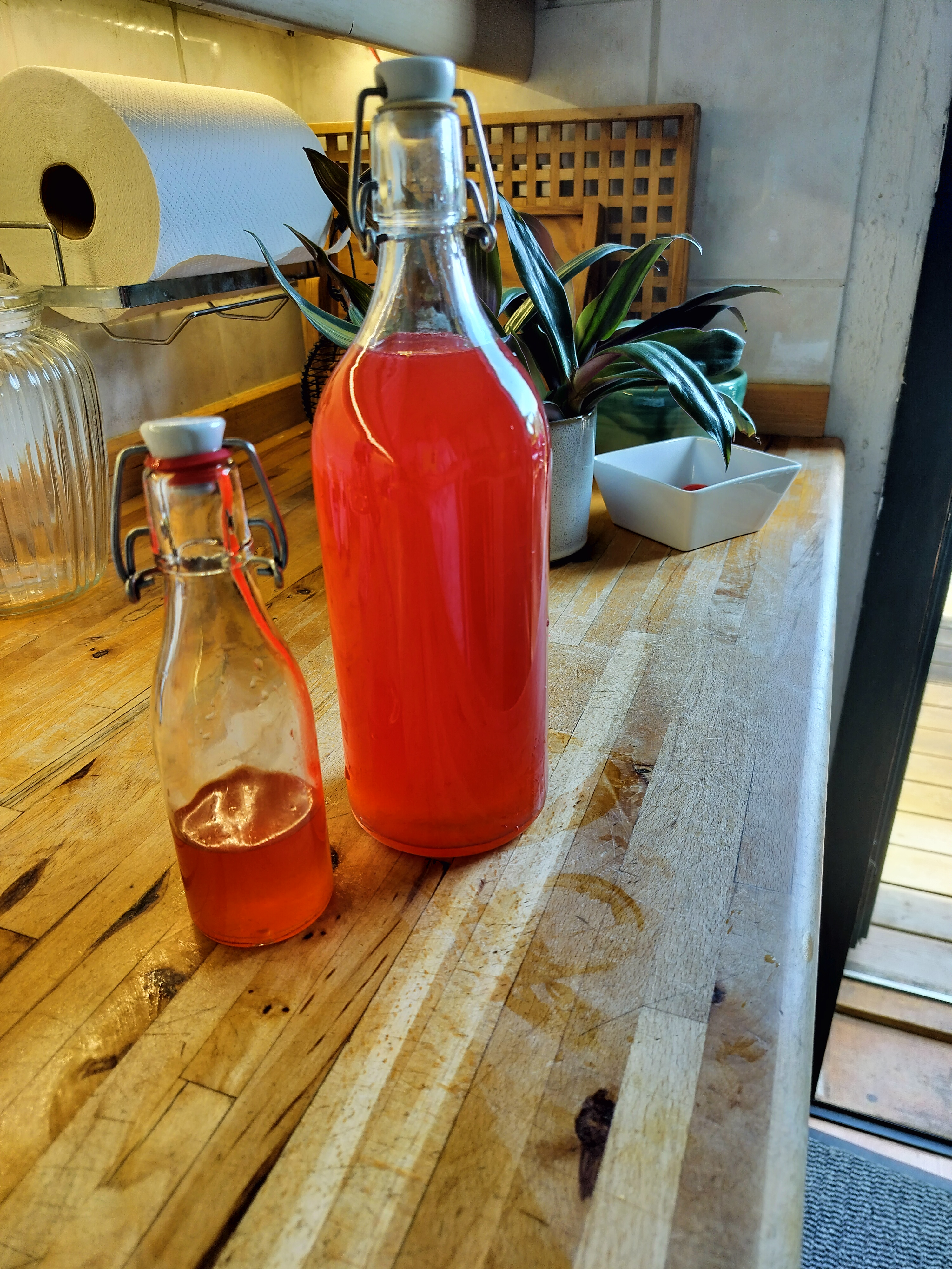 Desuden: 1 stort sylteglas med låg 2 liter og 1-2 patentflasker